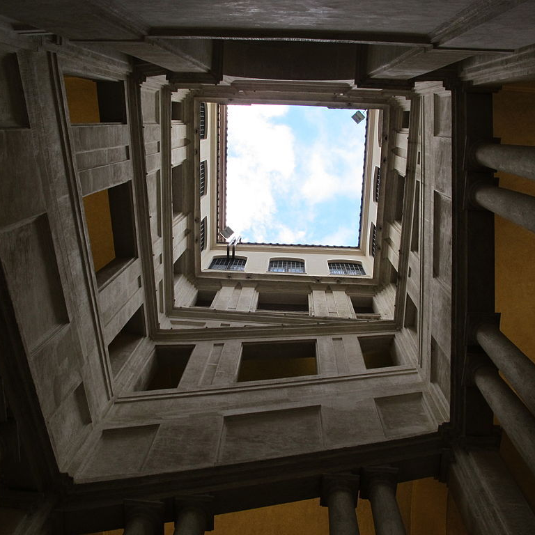 Другая постройка Бернини трехэтажное палаццо Одескальки интересно тем, что здесь отсутствует акцентировка центра, но зато использован другой выразительный прием: вместо обычного поэтажного членения впервые в архитектуре частных дворцов использован большой ордер. Ровная череда пилястр с коринфскими капителями, охватывающих собой два верхних этажа, вносит в фасад элемент подчеркнутого единства. Этот прием получил впоследствии широкое распространение в европейской дворцовой архитектуре, став олицетворением парадной торжественности.