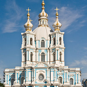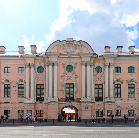 Ритм фасада определяется мощным рельефом колонн и полуколонн, собранных, как правило, в пучки и пары, чередующихся с оконными проемами. В этом сочетании прозрачности с массивностью - характерная особенность композиции дворца для Растрелли.